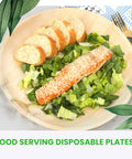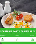 Create the perfect eco-friendly gathering with our comprehensive 125-piece round plate party bundle, featuring premium palm leaf plates, sustainable wooden cutlery, and recycled napkins.