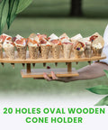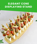 Enhance your food presentation with our elegant wooden cone stand, designed for professional service and creative food display.